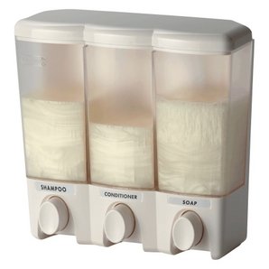 3 chamber units for shampoo, conditioner, and shower gel