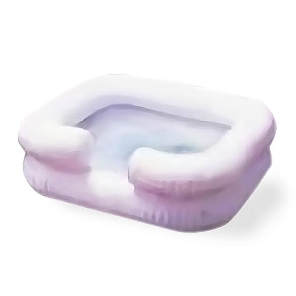 Inflatable shampoo basin makes it possible to wash a person's hair without removing them from a bed. The patient's neck and shoulders are cushioned in the inflatable rings. Complete with 4” drain hose, plug, and instructions. Inflates to 28" (71cm) wide x 24" (61cm) long x 6" (15cm) deep.
